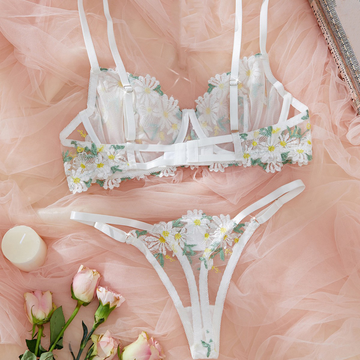French-style lace, fresh and delicate floral embroidered push-up bra and panty set